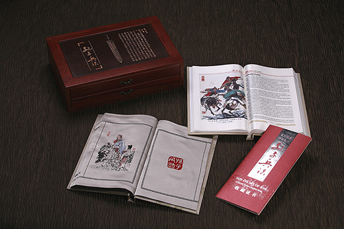 本书装帧采用双层珍贵红木书盒,结构独特,造型精巧,古朴典雅。为确保收藏价值,本丝绸珍本绝版限量发行 3000 套,并逐册编号,由国家外文出版社签章确认。
