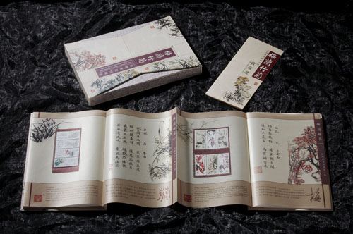 为了宏扬中华传统文化,同时也出于对“四君子”的喜爱和推崇,本公司精心设计制作了全真丝版丝绸邮票册《梅兰竹菊》系列。该邮票册采用了我公司独创的、具国内领先水平的“高分辨率全彩色真丝印制技术”和“真丝册页装订技术”。力图以中国传统的丝绸为媒质,通过展示历代名人名诗、名家书画及精心提炼的中英文介绍,再加上国内迄今为止发行的“梅花”、“兰花”、“竹子”及郑板桥系列中的“瓶菊”、潘天寿系列中的“菊竹图”等珍贵邮票,使其融丝绸文化、赏花文化及集邮收藏文化于一体,全面演绎 “梅兰竹菊”深邃儒雅的文化意义。