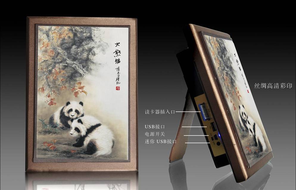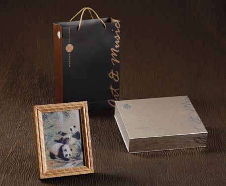 真丝艺术音响以中华国宝——大熊猫为主景画面。大熊猫是最珍稀的动物,也是和谐、友谊、和平的象征。该作品中的大熊猫形神俱佳,活灵活现,其憨态可掬、逗人喜爱的样子,赋予了画面鲜活的艺术感染力。