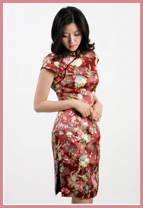 一款非常有感觉的蜀锦小旗袍,提前奉献给各位亲们了~。秋冬夹棉旗袍从车位上下来之后,就开始设计春季的旗袍了,这款是我们春季旗袍其中之一,也是非常有特色的一款:开叉处未包边,挽边。浪漫可爱的花朵,不经意带来一股春天的气息。本款旗袍美丽之处还在于裁剪,线条简单唯美,修身显瘦,上身效果非常棒,无论上班或休闲都合适。