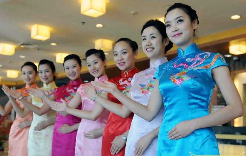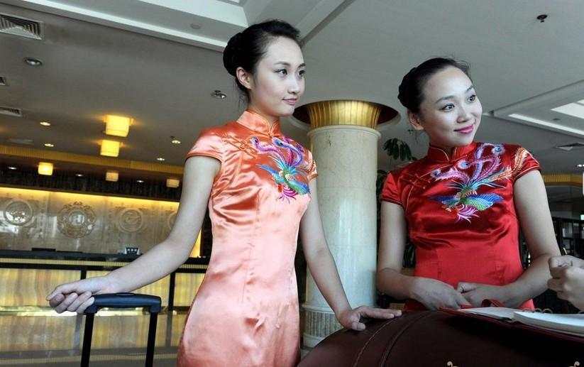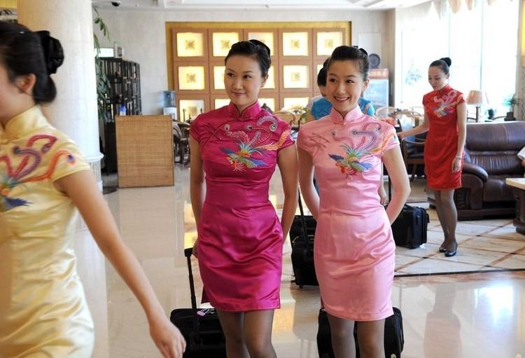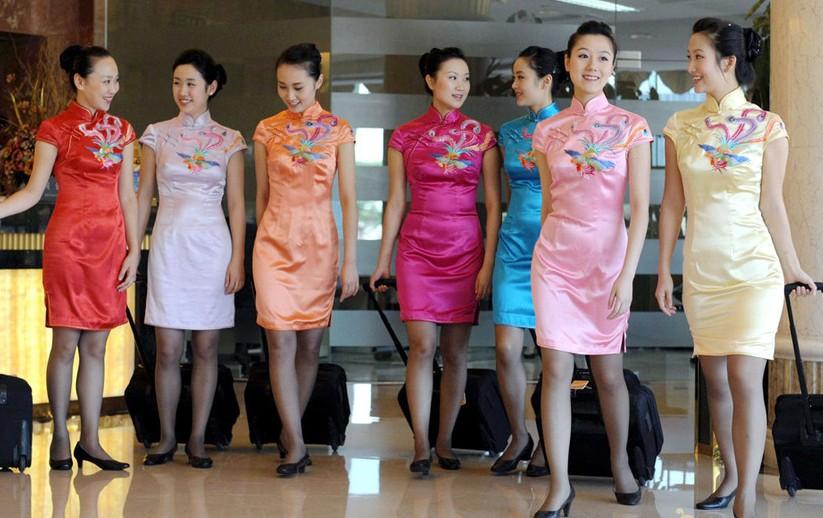 2009年6月22日,国内总装的第一架空客A320飞机即将交付。22日,将在这架飞机上为旅客提供服务的川航“祥凤”乘务组的7名空姐身着蜀绣凤凰图案的旗袍亮相天津。