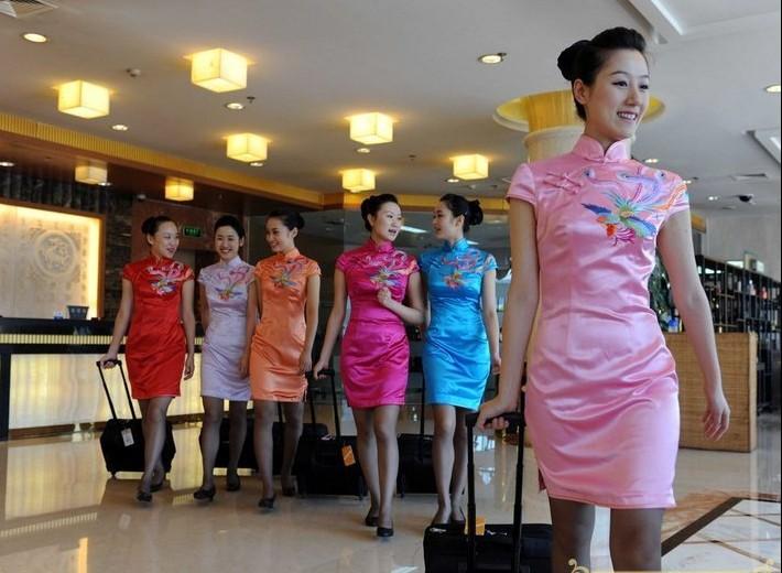 “祥凤”乘务组的7个乘务员个个身着蜀绣凤凰锦缎旗袍,让人们不由得想到了美丽的“七仙女”。