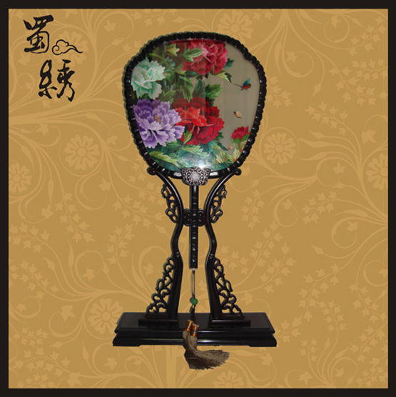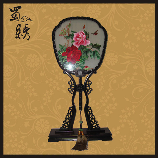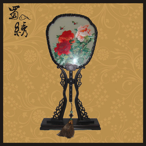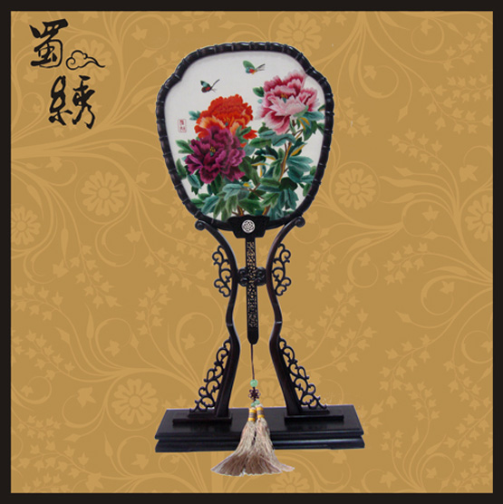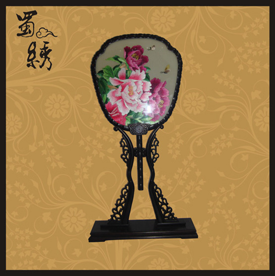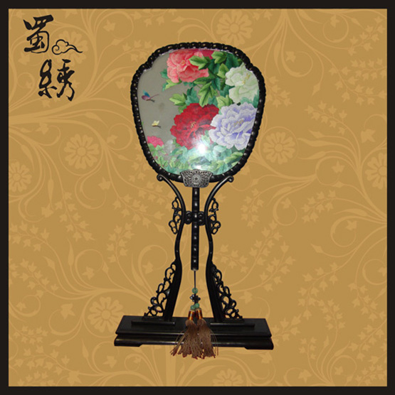 【产品名称】:锦玛绣品牌蜀绣 手工雕花框架双面绣牡丹(紫檀木)